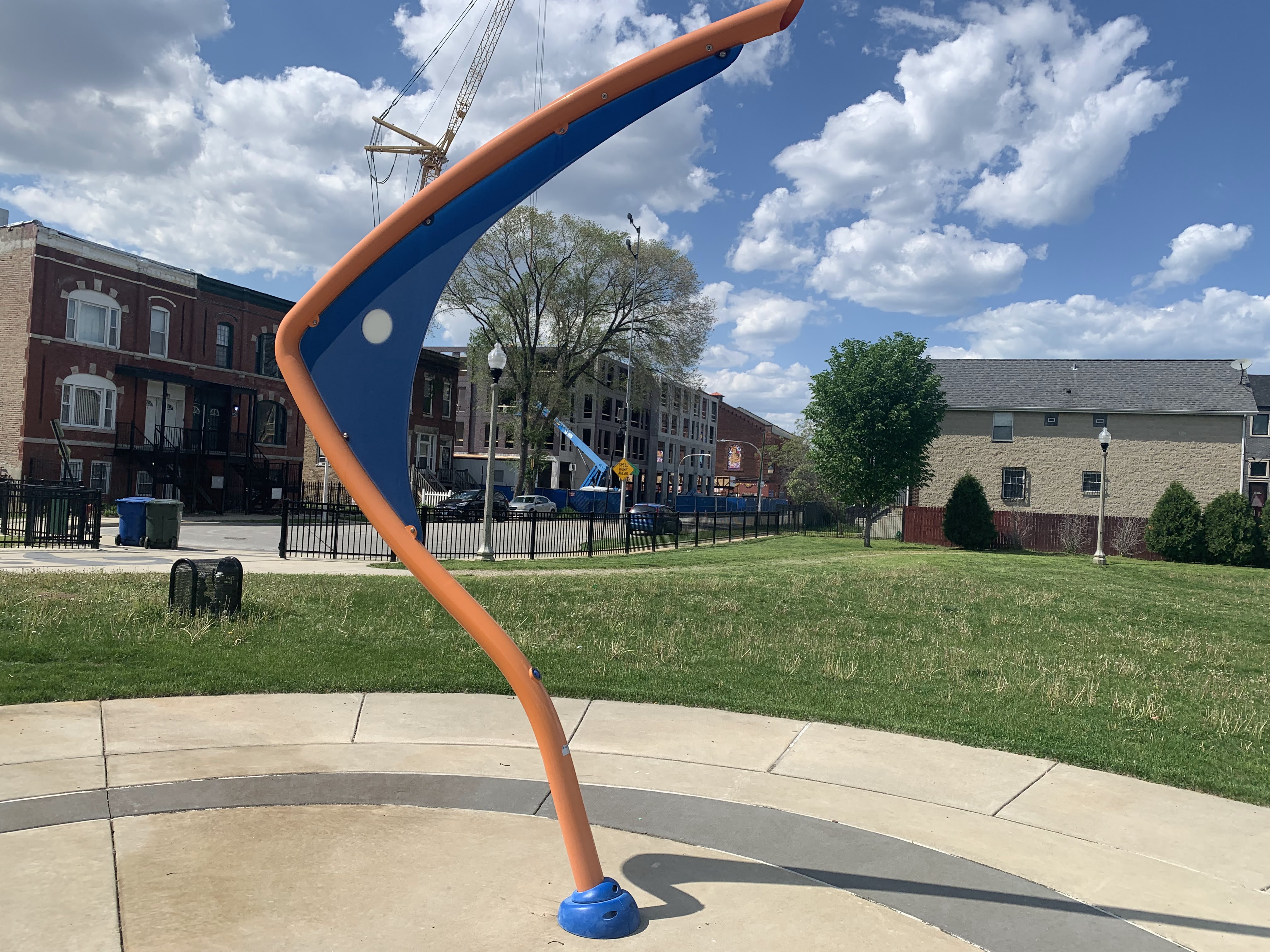A water spray element created by an angled piece of metal that looks (to me at least) like a wing.