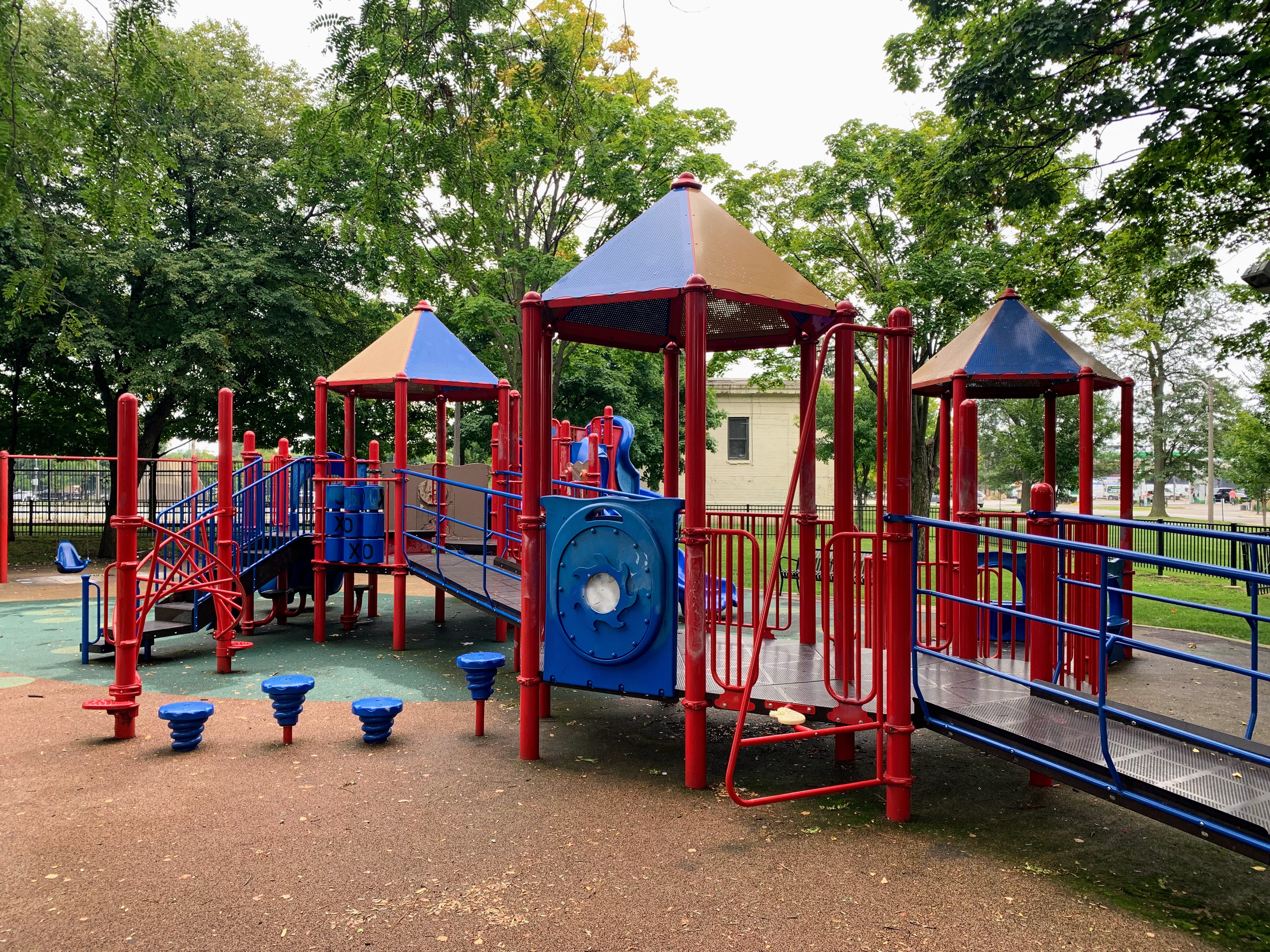 Looks like the mast and a sail of a sailing ship. If the sail was just an outline of metal with a single foot step at the bottom. Attached to a playground. So really nothing like a mast and a sail of a sailing ship. My bad.