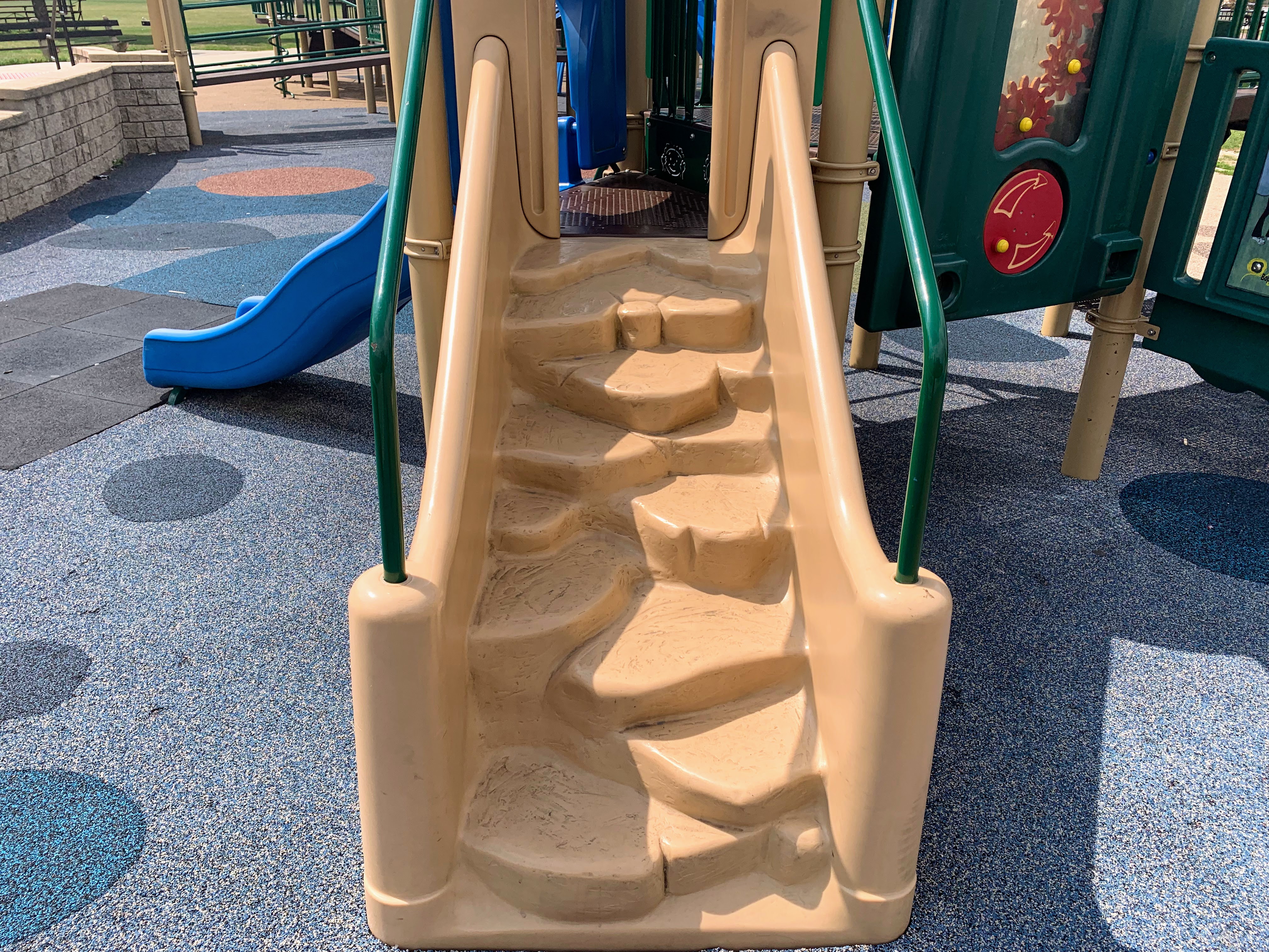 - No, not the famous steps in Philadelphia from the movie Rocky III. These steps are made plastic and look like rocks.