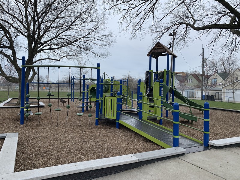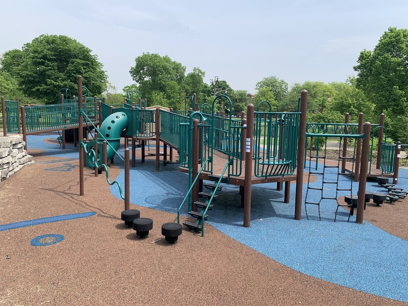 Berger Park - PlaygroundBerger Park has a wonderful playground with views of Lake Michigan. There is dedicated area for smaller children close to the lake with a nautical theme and a larger structure for older children that is accessible via a ramp. This playground has a rubberized surface and the equipment seemed new and well maintained. There were plenty of benches and a few picnic tables. This is a great playground; highly recommend.