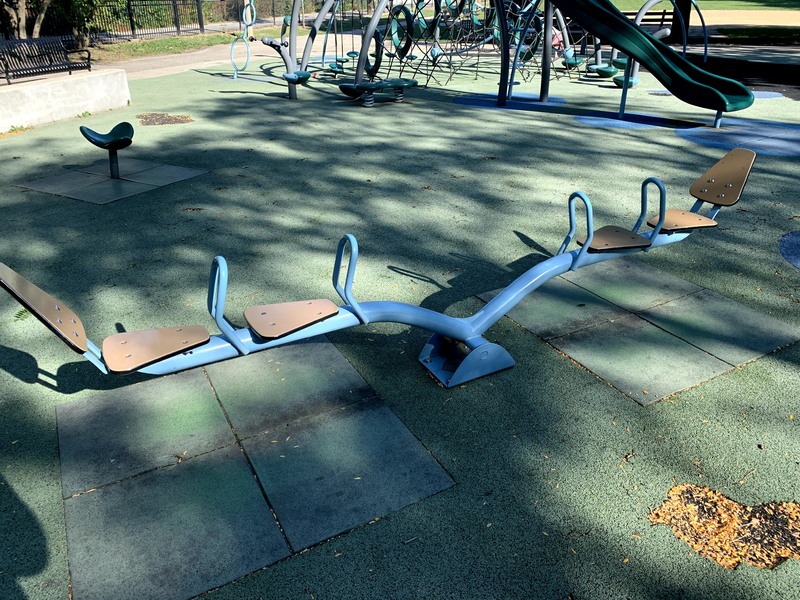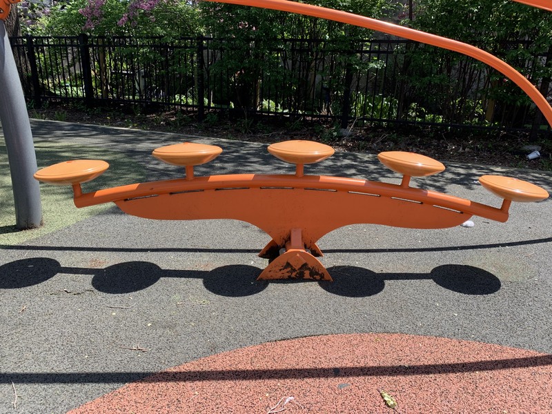 Standup See-SawA see-saw that does not have two seats but is instead made entirely of metal and has hand holds.