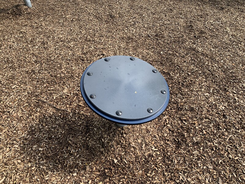 Spinning Circle with HandleA spinning circular platform near the ground with a handle.