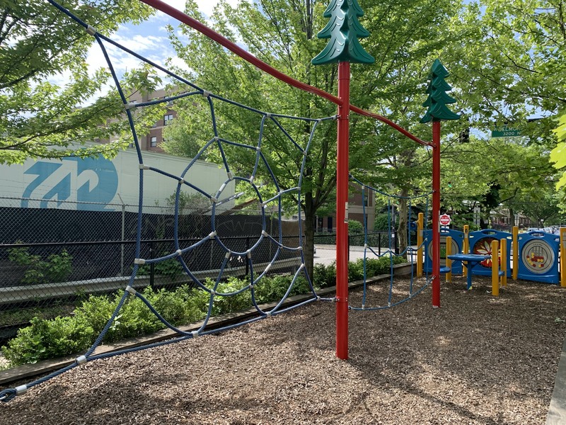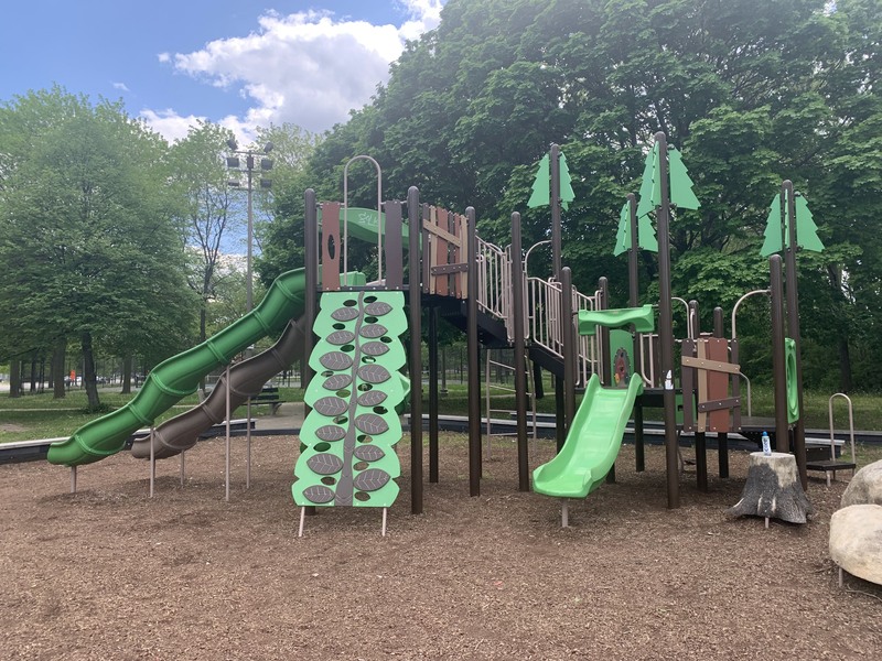 Several Chicago Playgrounds have little decorative trees on the top of the play structure. I have no idea how this information could be useful to anyone - but here is a list of Chicago Park playgrounds with little decorative trees.