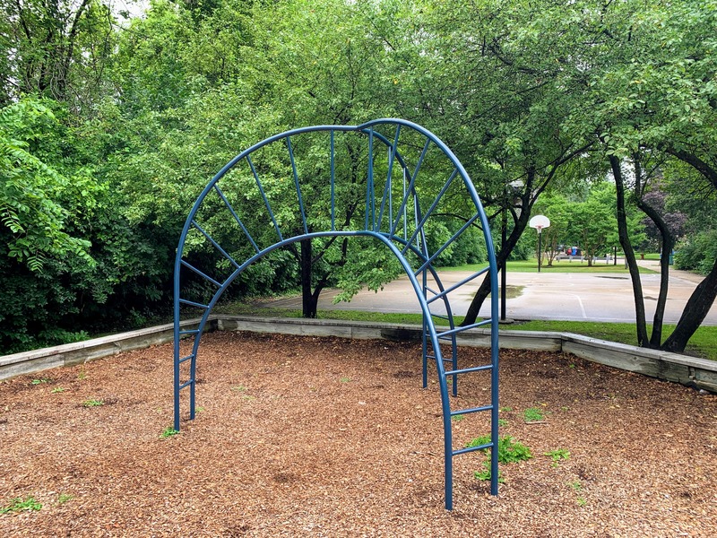 Arthur Telscer PlaygroundThis playground - one of 10 in Lincoln Park! - is named the Arthur Telscer Playground and features a play structure, sandbox, and water spray feature. The play structure is relatively small and is designed for younger children. The is also a collection of overhead and climbing elements nearby that should prove challenging to older children. There is also a set of swings with the Chicago Park standards - toddler, adapative, and belt seat - along with a few standalone elements including two animal sculptures. The water spray feature is a simple 'four sprayer' and there is a sandbox (usually with a few leftover sand toys). This playground is heavily shaded and fully enclosed with a few benches for seating. All in all, this is a solid playground; highly recommend.