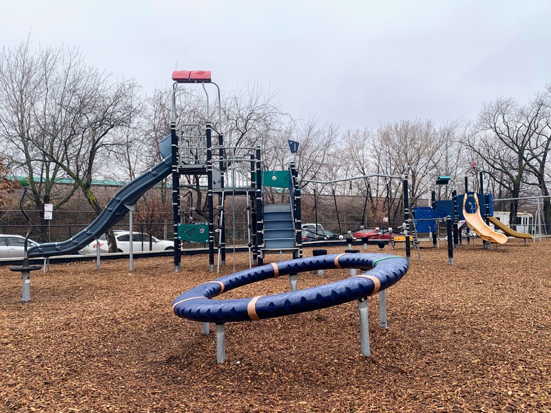 Horner Park - PlaygroundThe Horner Park playground is - in a word - amazing. There are two play large play structures, a small zipline, a variety of swings, and a few other standalone elements that make this a destination playground. The smaller structure for younger children contains a few slides, tubes, and climbing features as well as a few interactive panels. The larger structure for older children is quite large; it features multiple platforms connected by various bridges and net/rope climbing elements and several slides. There is a small zipline with a hanging circle seat. There are a lot of swing options: toddler, molded bucket seat with a harness, belt seat, and a large standalone saucer swing. The play area itself is quite large and while it is fenced from the street it is not fully enclosed. The play surface is wood chips and there are a few benches and picnic tables doting the perimeter for seating. The Horner Park fieldhouse is quite close and provides access to bathrooms. While this playground doesn't have everything (it lacks a water feature and could be improved with more shade) this playground is still amazing. This is definitely a destination playground. Beyond the playground, Horner Park is one of the largest parks in the area and includes a large hill that is perfect for flying kites or sledding; a free parking lot of California Avenue; and a walking path around the entire park perfect for walking, biking, or riding scooters. There is also a small (and I believe unofficial) nature play area south of the parking lot off California.