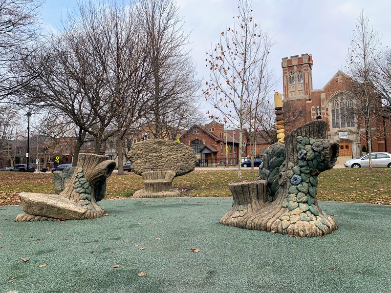 These are playgrounds that feature sculptures that are both artistic and designed for use. Sculptures that are purely artistic (i.e. with "do not touch" signs) are not listed here nor are play animals that aren't really artistic (i.e. playground equipment that looks like an animal.)