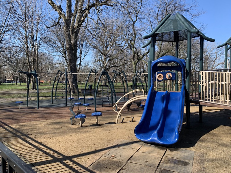 Jacob Park - Playground ParkA small neighborhood park that borders the Chicago River and the CTA Brown Line, this park contains a grassy hill and a large sand play area with a small bridge. The playground features a smaller area designed for younger children and another area with monkey bars and climbing elements designed for older children. There is plenty of morning shade and several benches and picnic tables at this park making this a comfortable spot to watch trains while you play.